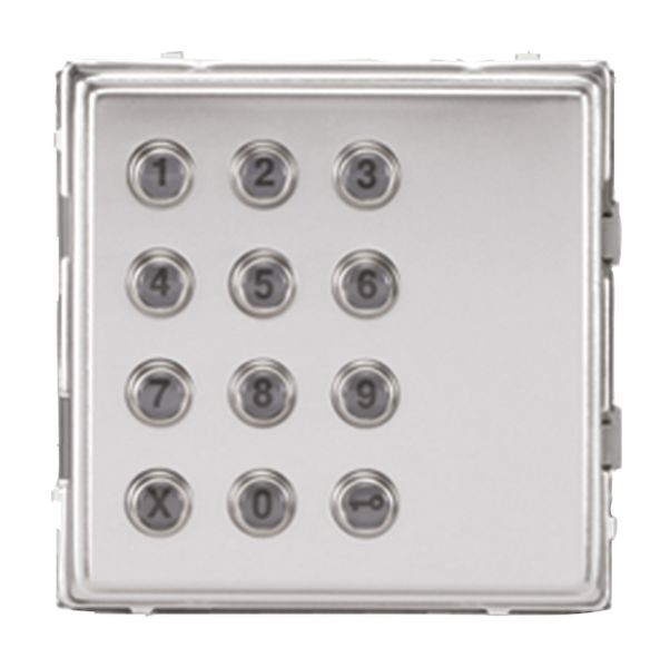 Dieses Codeschloss-Modul verfügt über 12 Tasten, die eine Hintergrundbeleuchtung besitzen. Das Modul bietet Ihnen die Möglichkeit, bis zu 22 programmierbare Teilnehmercodes zu vergeben. Die Codes müssen min. 3 bis max. 8 Ziffern pro Türöffner-Code besitzen. Die Programmierung erfolgt bequem über die Tastatur nach Eingabe eines Spezial-Codes. Zusätzlich besitzt das Modul einen Timer-Anschluss (bei eingeschalteter und bauseits vorhandener Zeitschaltuhr lässt sich die Tür über Schlüssel-Taste öffnen). Die Türöffnerzeit lässt sich zwischen 1 und 30 Sekunden einstellen. Die Oberfläche besteht aus eloxiertem Aluminium, was dem Modul einen edlen Look schenkt.