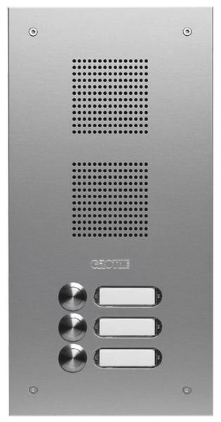 Die Serie ROBUSTA ist ausgestattet mit Eigenentwicklungen aus unserem Hause, wie z. B. den Tastern der Serie PROTACT oder dem LED-Namensschild. Bei diesem Artikel handelt es sich um eine bündig abschließende Unterputz-, Audio-Türstation mit insgesamt drei Klingeltastern und drei Namensschildern. Der PROTACT Klingeltaster mit seiner taktilen Rückmeldung gibt Ihnen ein angenehmes Gefühl beim Betätigen und das Namensschild rundet visuell nochmals mit seiner LED-Beleuchtung die Front ab. Die 2,5 mm dicke Frontplatte ist aus Aluminium (Silber eloxiert), was der Türstation einen edlen Look verschafft. Neben dem verzinktem Unterputzkasten und den diebstahlsicheren Befestigungsschrauben, besitzt die ROBUSTA einen integrierten Lautsprecheradapter und bietet Ihnen zusätzlich so die Möglichkeit einen GROTHE Lautsprecher einzubauen. Der patentierte Lautsprecheradapter bieten mit den getrennten Kammern sowie dem Wasserableitsystem eine optimale Akustik und den besten Schutz gegen Witterungseinflüsse.