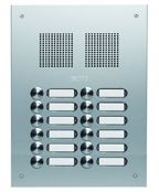 Die Serie ROBUSTA ist ausgestattet mit Eigenentwicklungen aus unserem Hause, wie z. B. den Tastern der Serie PROTACT oder dem LED-Namensschild. Bei diesem Artikel handelt es sich um eine bündig abschließende Unterputz-, Audio-Türstation mit insgesamt 12 Klingeltastern und 12 Namensschildern die zweireihig angeordnet sind. Der PROTACT Klingeltaster mit seiner taktilen Rückmeldung gibt Ihnen ein angenehmes Gefühl beim Betätigen und das Namensschild rundet visuell nochmals mit seiner LED-Beleuchtung die Front ab. Die 2,5 mm dicke Frontplatte ist aus Aluminium (Silber eloxiert), was der Türstation einen edlen Look verschafft. Neben dem verzinktem Unterputzkasten und den diebstahlsicheren Befestigungsschrauben, besitzt die ROBUSTA einen integrierten Lautsprecheradapter und bietet Ihnen zusätzlich so die Möglichkeit einen GROTHE Lautsprecher einzubauen. Der patentierte Lautsprecheradapter bieten mit den getrennten Kammern sowie dem Wasserableitsystem eine optimale Akustik und den besten Schutz gegen Witterungseinflüsse.