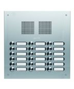 Die Serie ROBUSTA ist ausgestattet mit Eigenentwicklungen aus unserem Hause, wie z. B. den Tastern der Serie PROTACT oder dem LED-Namensschild. Bei diesem Artikel handelt es sich um eine bündig abschließende Unterputz-, Audio-Türstation mit insgesamt 18 Klingeltastern und 18 Namensschildern die dreireihig angeordnet sind. Der PROTACT Klingeltaster mit seiner taktilen Rückmeldung gibt Ihnen ein angenehmes Gefühl beim Betätigen und das Namensschild rundet visuell nochmals mit seiner LED-Beleuchtung die Front ab. Die 2,5 mm dicke Frontplatte ist aus Aluminium (Silber eloxiert), was der Türstation einen edlen Look verschafft. Neben dem verzinktem Unterputzkasten und den diebstahlsicheren Befestigungsschrauben, besitzt die ROBUSTA einen integrierten Lautsprecheradapter und bietet Ihnen zusätzlich so die Möglichkeit einen GROTHE Lautsprecher einzubauen. Der patentierte Lautsprecheradapter bieten mit den getrennten Kammern sowie dem Wasserableitsystem eine optimale Akustik und den besten Schutz gegen Witterungseinflüsse.