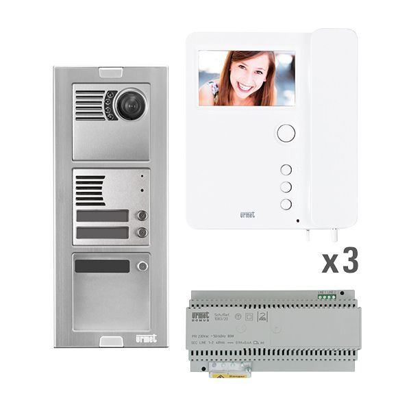 Basis-Videoanlagen-Set 2VOICE-Technologie für drei Wohneinheiten.