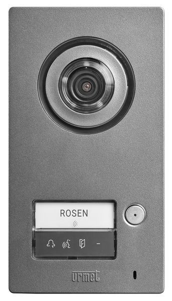 Das Gerät besitzt eine Klingeltaste und ein Namenschild welche beide eine hintergrundbeleuchtung besitzen. Die Weitwinkel-Farbkamera besitzt einen Blickwinkel von 110° Horizontal und 92° Vertikal, was es Ihnen ermöglicht einen großen Bereich zu erfassen. Das Gerät wird mittels Aufputzmontage an der Wand befestigt.