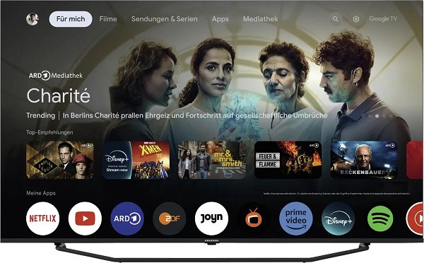 Der Grundig 50-Zoll-QLED-Fernseher bietet ein beeindruckendes Heimkinoerlebnis mit seiner 4K Ultra HD-Auflösung von 3.840x2.160 Pixeln auf einem 126 cm großen Bildschirm. Die QLED-Technologie in Kombination mit HDR10+ und Dolby Vision sorgt für lebendige Farben und exzellente Kontraste. Der Video Perfection Index von 1.800 und die Micro Dimming Engine garantieren eine scharfe und flüssige Bilddarstellung. Ausgestattet mit DVB-T2, DVB-S2 und DVB-C Empfängern bietet das Gerät vielseitige Empfangsmöglichkeiten. Das integrierte Google TV-Betriebssystem macht den Fernseher zu einem intelligenten Entertainment-Center mit Zugang zu zahlreichen Online-Diensten und Apps. Funktionen wie USB-Recording, TimeShift und der eingebaute Chromecast erhöhen den Bedienkomfort. Der Klang wird durch Magic Fidelity Sound und Dolby Atmos mit einer Gesamtleistung von 40 Watt optimiert. Trotz der leistungsstarken Ausstattung ist der Fernseher in die Energieeffizienzklasse F eingestuft. Besonders hervorzuheben sind die Nachhaltigkeitsaspekte wie die vollständig recycelte Verpackung und die zu 60% aus recyceltem Material hergestellten Lautsprecherboxen. Mit der integrierten Sprachsteuerung "Hey Google" und der benutzerfreundlichen Oberfläche bietet dieser Grundig-Fernseher ein modernes und komfortables Fernseherlebnis. Die Motion Picture Improvement-Technologie von Grundig sorgt für eine dynamische und ruckelfreie Bildschärfe, ideal für Action-Szenen und schnelle Bewegungen.