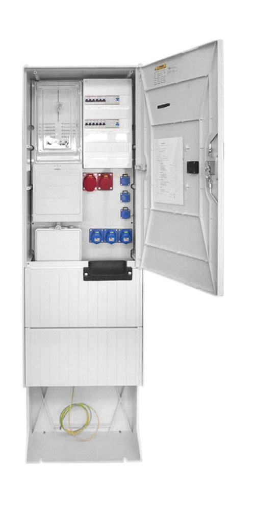 | Kurzbeschreibung | Festplatzsäule mit VNB-Teil, bestückt mit CEE32+CEE16+3xSchuko+3xCE16(230V), mit FP-Einf |