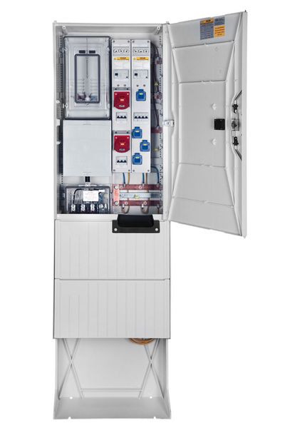 Festplatzsäule mit VNB-Teil,inkl.Sammelschienen,5-pol, Sys-Leisten 32-Schuko, mit FP-Einf.