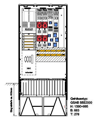 | Kurzbeschreibung | Festplatzsäule mit VNB-Teil,inkl.Sammelschienen,5-pol,Sys-Leisten CEE63-32-16-CE17-Schuko,m.FP-Einf. |