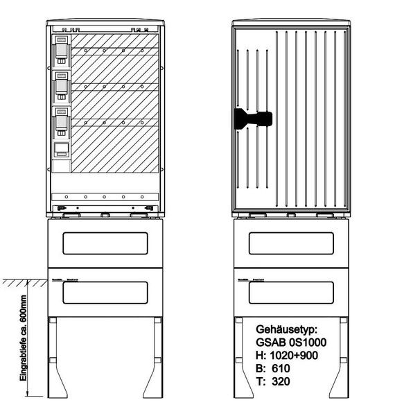 | Kurzbeschreibung | Normkabelverteiler Gr.0, ohne Sockel HxBxT 1005x610x320mm, mit Sammelschienen 4-pol 30x5, 1LSL2 |