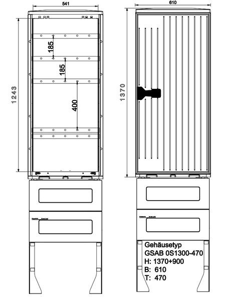 | Kurzbeschreibung | Normkabelverteiler Gr.0, ohne Sockel, HxBxT 1300x610x470mm, 5-pol. Sammelsch. 30x5mm, 185mm |
