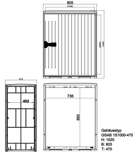 | Kurzbeschreibung | Normkabelverteilerschrank Gr.1 ohne Sockel HxBxT:1020x805x470 mit PVC-Montageplatte 6mm Doppelschließung |