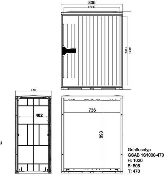 | Kurzbeschreibung | Normkabelverteilerschrank Gr.1 ohne Sockel HxBxT:1020x805x470 Montagepl. Doppelschließung, Powder In-Mould Coating |
