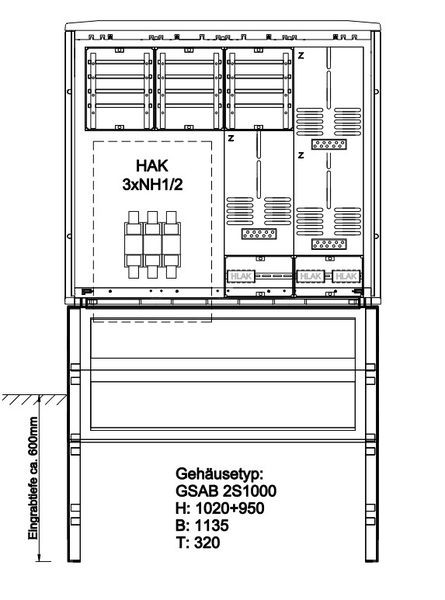 | Kurzbeschreibung | Zähleranschlusssäule Westnetz (3Zähler ohne TSG) mit HAK NH2 bis 150mm2 |