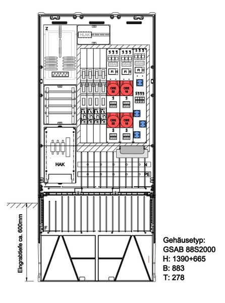 | Kurzbeschreibung | Festplatzsäule mit VNB-Teil,inkl.Sammelschienen,5-pol,4LSL00 Sys-Leisten CEE32-16-Schuko, mit FP-Ein |