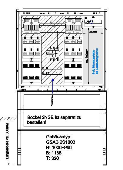 | Kurzbeschreibung | Verteilerschrank für Emobility H:1020 x B:1135 x T:320mm für 12x11KW Abgänge |