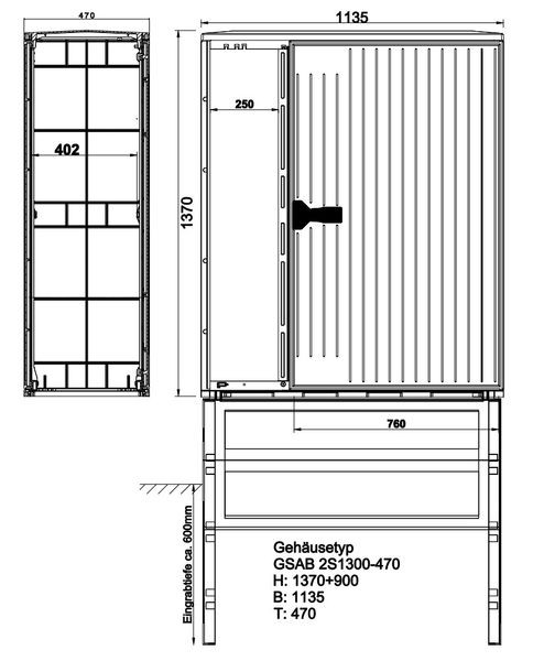 | Kurzbeschreibung | Verteilerschrank HxBxT:1300x1135x470 1/3-Tür und 2/3-Tür Doppelschwenkhebel |