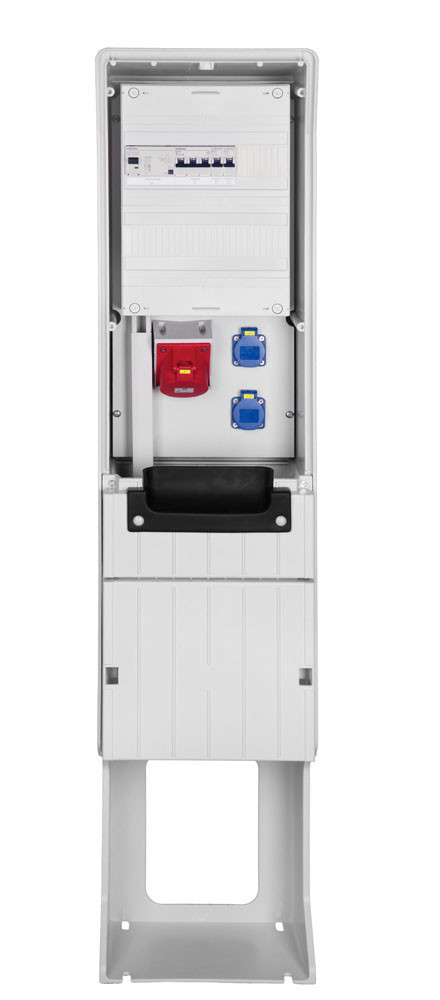 Festplatzverteiler mit Sockel HxBxT:1420x320x234mm best.mit CEE32,2xSchuko inkl. FP-Einführung