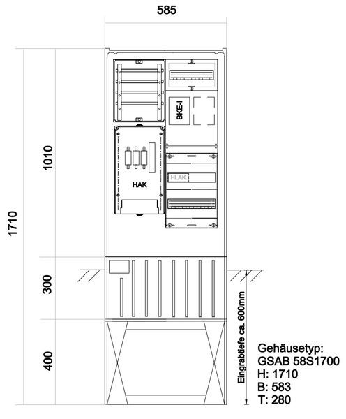 GSAB 33.00.1P11bezV2 Zähleranschlusssäule LEW