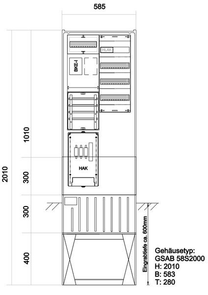 | Kurzbeschreibung | Zähleranschlusssäule LEW 1EHZ-Zählerplatz + 1xReserveplatz EHZ mit Verteiler 4x13TE |