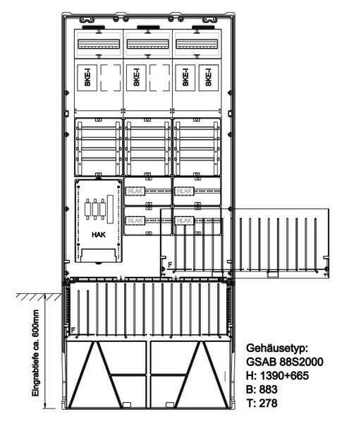 | Kurzbeschreibung | Zähleranschlusssäule LEW 4xEHZ-Zählerplatz + 2xReserveplatz EHZ |