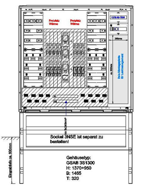 | Kurzbeschreibung | Verteilerschrank für Emobility H:1370 x B:1465 x T:320mm für 14x22KW Abgänge |