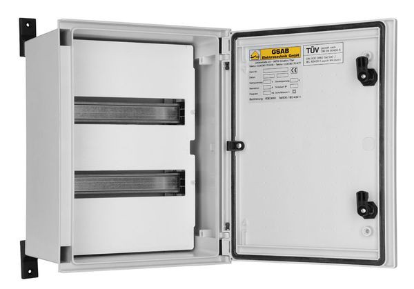 GfK-Wandschrank IP65 H 400 x B 300 x T 200 mit Verteiler 2x12 TE ohne Flansch, ohne Verschraubunge