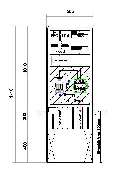 | Kurzbeschreibung | NA Schutz Anschlußsäule H:B:T:1710:580:280mm Doppelschließung bis 45kW |