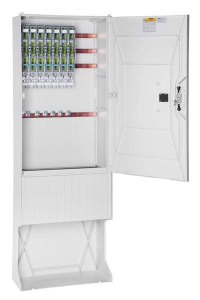| Kurzbeschreibung | Kabelverteilersäule, Sammelschiene 30x5, 4-pol. (100mm) mit 7xNH00 Sicherungslastschaltleisten |