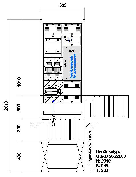 | Kurzbeschreibung | Verteilersäule für Emobility H:2010 x B:585 x T:280mm für 4x22KW Abgänge |