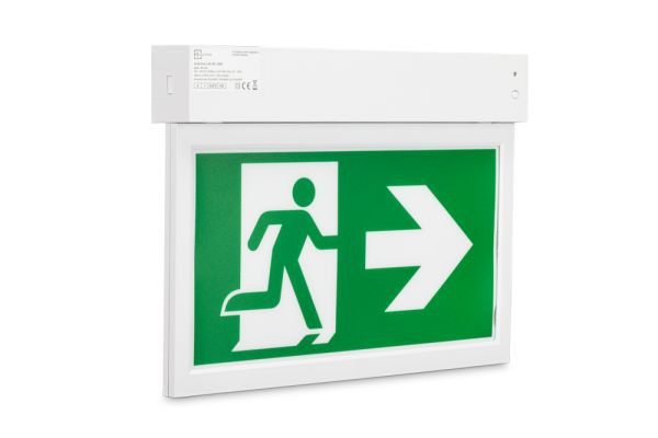 Moderne, unauffällige und ästhetische Rettungszeichenleuchte Unlimited, im Polycarbonatgehäuse in Verkehrsweiß, RAL 9016. Dank Universalmontage, ohne weiteres Zubehör, an Wand oder Decke montierbar. Sie bestimmen (auch noch vor Ort), wo die Leuchte befestigt wird. Ohne Werkzeug einrastbares Leuchtenmodul, vollständig mit allen elektrischen Betriebs- und Leuchtmitteln, zur schnellen und einfachen Installation.