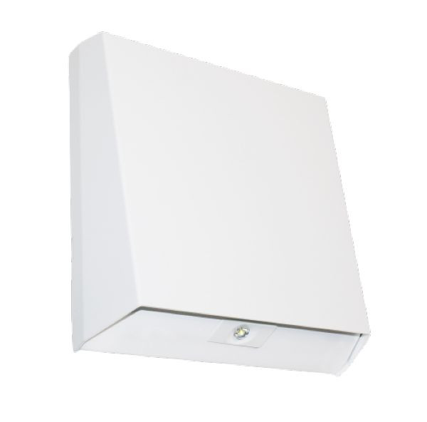 Sicherheitsleuchte zur Wandmontage im schlagfesten Gehäuse (IK10) aus verzinktem Stahlblech, Verkehrsweiß RAL 9016. Die IP65-Funktionalität wird durch Kapselung der Elektronik-Einheit erreicht, somit kann die Leuchte ohne Funktionseinschränkung im Außenbereich eingesetzt werden.