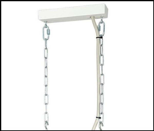 Universelle Leuchtenbefestigung, stabiler Baldachin mit Anschlussraum, seitliche & rückseitige Kabeleinführung, Deckenmontage mit Kettenösen. Die Kette gehört nicht zum Lieferumfang.