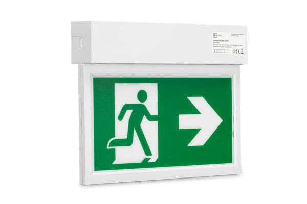 Moderne, unauffällige und ästhetische Rettungszeichenleuchte Unlimited, im Polycarbonatgehäuse in Verkehrsweiß, RAL 9016. Dank Universalmontage, ohne weiteres Zubehör, an Wand oder Decke montierbar. Sie bestimmen (auch noch vor Ort), wo die Leuchte befestigt wird. Ohne Werkzeug einrastbares Leuchtenmodul, vollständig mit allen elektrischen Betriebs- und Leuchtmitteln, zur schnellen und einfachen Installation.