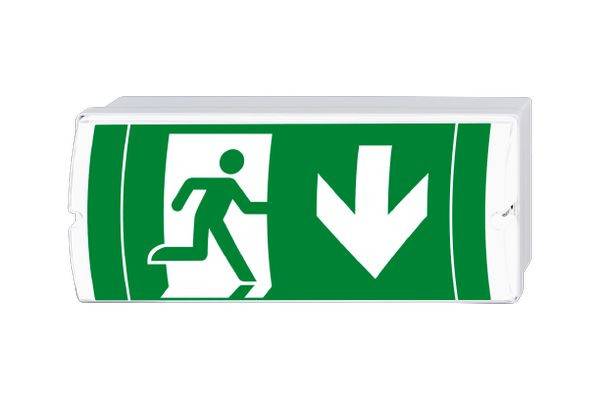 | Kurzbeschreibung | Rettungszeichenleuchte Curved L | CBS | Wandmontage | 3W | IP65 | 230V AC/DC | EKW 30m |