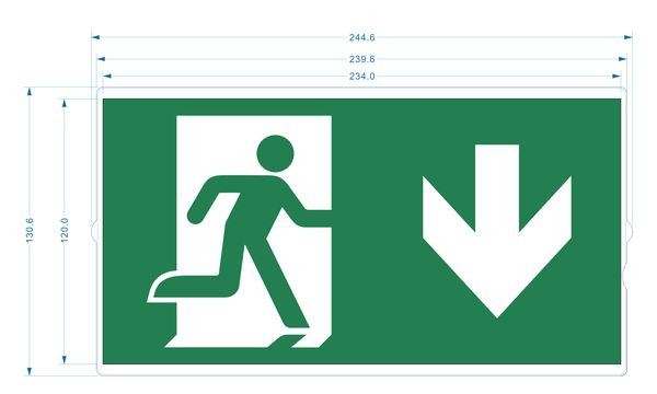 | Kurzbeschreibung | Unlimited M Picto Down - Piktogramm für Unlimited M | Pfeilrichtung unten | 240 x 130mm | EKW 24m |