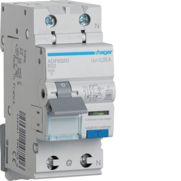 | Kurzbeschreibung | Fehlerstrom-Leitungsschutzschalter, FI/LS-Schalter 1P+N 6kA B-32A 30mA Typ F QC |