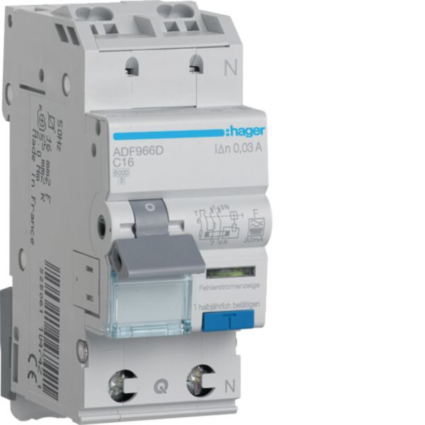 | Kurzbeschreibung | Fehlerstrom-Leitungsschutzschalter, FI/LS-Schalter 1P+N 6kA C-16A 30mA Typ F QC |