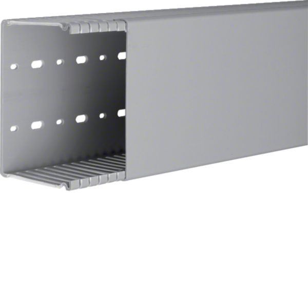 Der Verdrahtungskanal BA6 aus PVC in der Farbe Steingrau mit den Maßen 80x120mm ist für die Kabelführung konzipiert. Er verfügt über ein Unterteil mit Seitenstanzung und ein passendes Oberteil. Die Bodenlochung entspricht der Norm EN 5008.