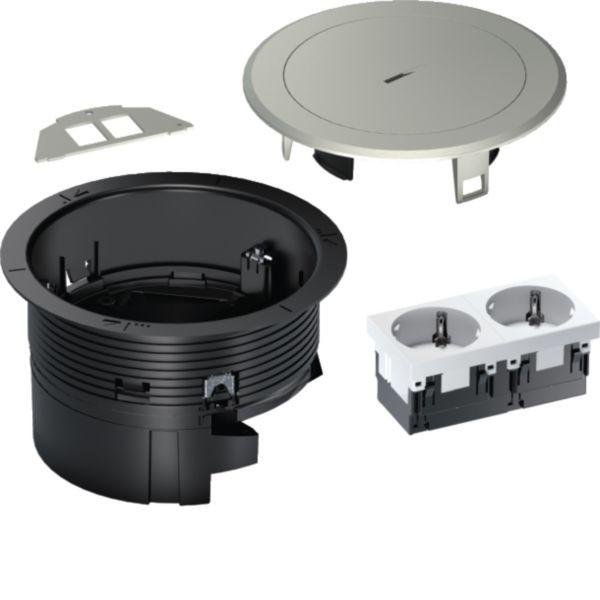 Installationsdose R02, 2x SCHUKO, Keystone Typ 01 2-f, Metall Tubus silber