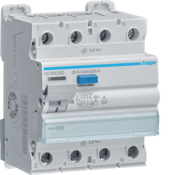 Fehlerstromschutzschalter 4 polig 10kA 25A 30mA Typ A