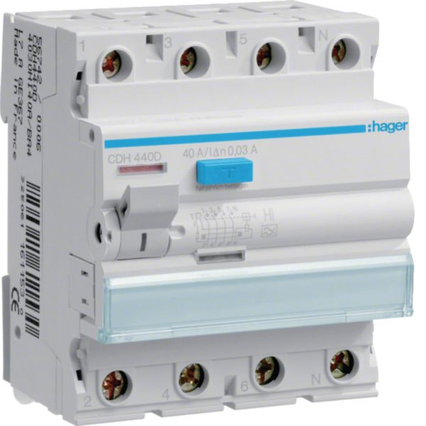 | Kurzbeschreibung | FI-Schalter 4P 6kA 40A 30mA Typ A HI |