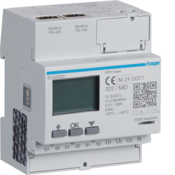 Energiezähler 3phasig für Wandlerverhältnis 1A oder 5A, 4M, AGARDIO, MID