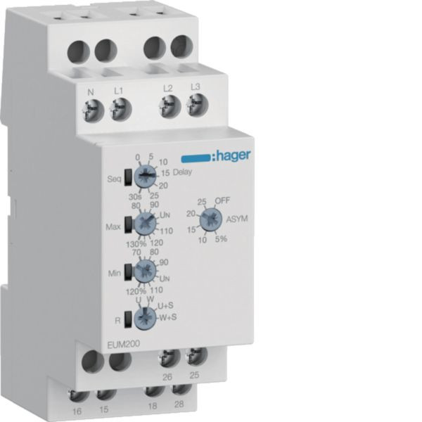 Kontrollrelais Spannung, Phasenüberwachung, einstellbar 1P+N/3P(N) 2 Wechsler