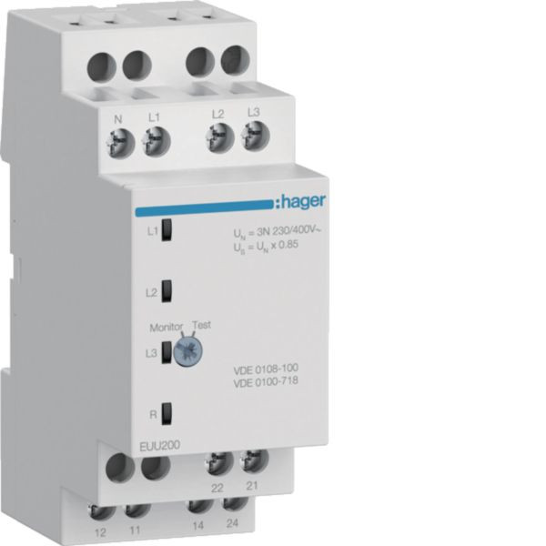 Kontrollrelais Unterspannung VDE 1P+N/3P+N 2 Wechsler