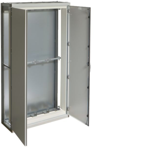 Anreihstandverteiler IP Standard 41, Maße 1100x2000x400 mm, RAL7035, Rückwand verzinkt. Geeignet für Innenraummontage, erfüllt VDE 0660, DIN EN 61 439. Bemessungsisolationsspannung Wechselstrom 800 Volt, Überspannungskategorie IV. Standgehäuse modular 1- bis 6-feldig, 144-864 Platzeinheiten. Türöffnungswinkel 120°, Tür aus 2 mm Stahlblech, pulverbeschichtet. Leitungseinführungen oben/unten anpassbar, Schutzklasse I geerdet.