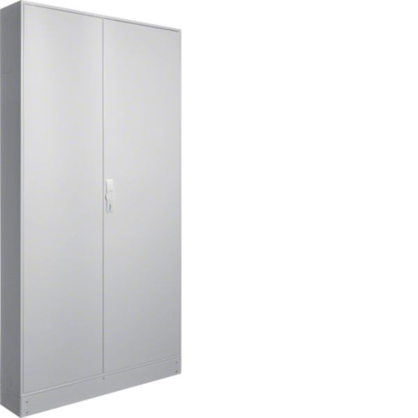 Schrank univers für Innenraummontage, Maße: 1950x1050x205mm. Ausstattung: pulverbeschichtetes Stahlblech (1mm), Kunststoffinnenauskleidung, IP Standard 44, Schutzklasse II. Geeignet für Niederspannungsverteilungen bis 400 Ampere, 3AC 230/400 Volt 50 Hertz. Normkonformität: DIN EN 61439-1/-2/-3, DIN 43870. Features: durchsteckbare Flansche, verstellbare Scharniere, Dreipunktschließung, vorinstallierte Sockelleiste.
