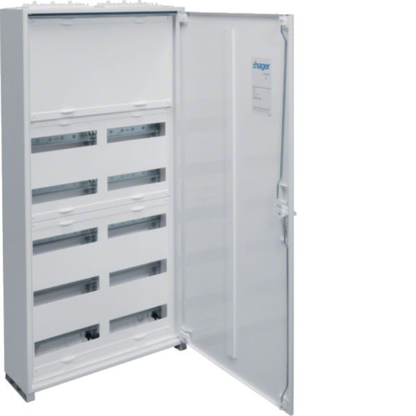 Feldverteiler nach DIN EN 61 439-1/-3 zertifiziert, nach Maßnorm DIN 43 870 gefertigt wurde. Dieser Schrank eignet sich für den Einbau von Geräten bis zu 125 A und verfügt über Luft- und Kriechstrecken gemäß DIN EN 60664-1. Der pulverbeschichtete Stahlblech-Schrank verfügt ab einer Breite von 800 mm einen zweitürigen Aufbau. Die Tragschienen sind profiliert. Die obersten beiden Reihen verfügen über 15 mm hohe Hutschienen für Reihenklemmen in 150 mm Abstand. Leitungseinführungen oben und unten.
