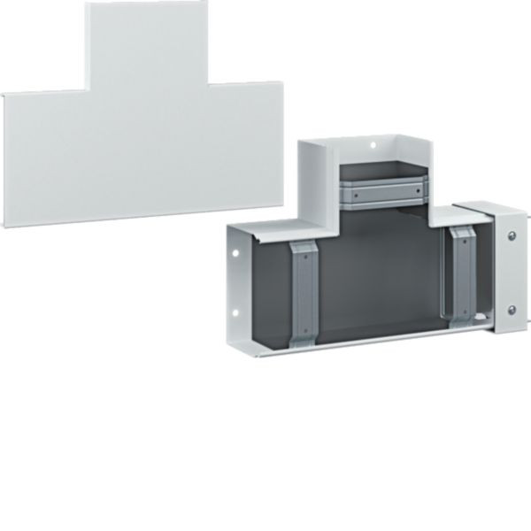 Das T-Stück FWK-Plus 100x150 mm in Weiß ist ein pulverbeschichtetes Formteil für den feuerwiderstandsfähigen Leitungsführungskanal FWKP. Es dient der sicheren und normgerechten Verzweigung von Kabelkanälen in Brandschutzanwendungen sowohl an Wänden als auch an Decken.