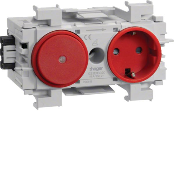 Steckdose+Schalter mit Wago Steck-/Klemmtechnik Frontrastend in verkehrsrot