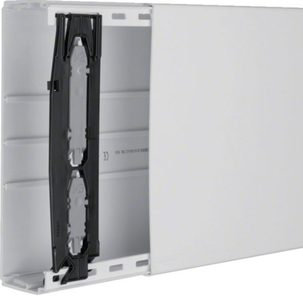 Typen-Endnummer ...1= mit Trennwand Leitungsführungskanal aus PVC, LF 60x230mm, lichtgrau, entspricht DIN EN 50085-1. Ausgestattet mit Trennwand-Einbaumöglichkeit, einrastbarem Kanalunterteil und -oberteil sowie vorgestanzter Bodenlochung im 125 mm Abstand. Die vormontierten Kupplungen unterstützen die einfache Ein-Mann-Montage. Rückhalteklammern sind anstellbar, was die Installation erleichtert.
