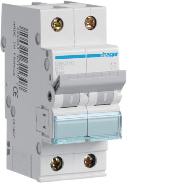 Leitungsschutzschalter 2 polig 6kA B-Charakteristik 10A 2 Module