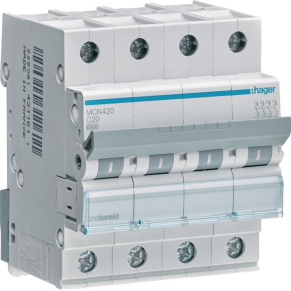 | Kurzbeschreibung | LS-Schalter 4 polig 6kA C-20A 4M |